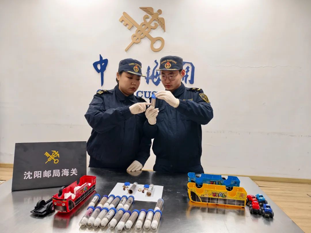 沈阳邮局海关关员在对进境邮件进行监管时,发现两件邮件机检图像额外。经开拆后发现透明试管些许,管内装有虫豸40只,每只虫豸用一个透明离心管封装,离心管内垫有碎纸屑和养分液浸泡的棉花,而况夹藏在玩物汽车里面进行伪装。